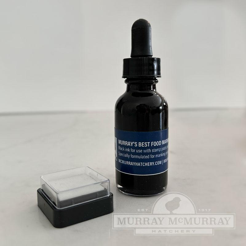 - One Bottle of Murray's Best™ Food Marking Ink (black) with small stamp pad