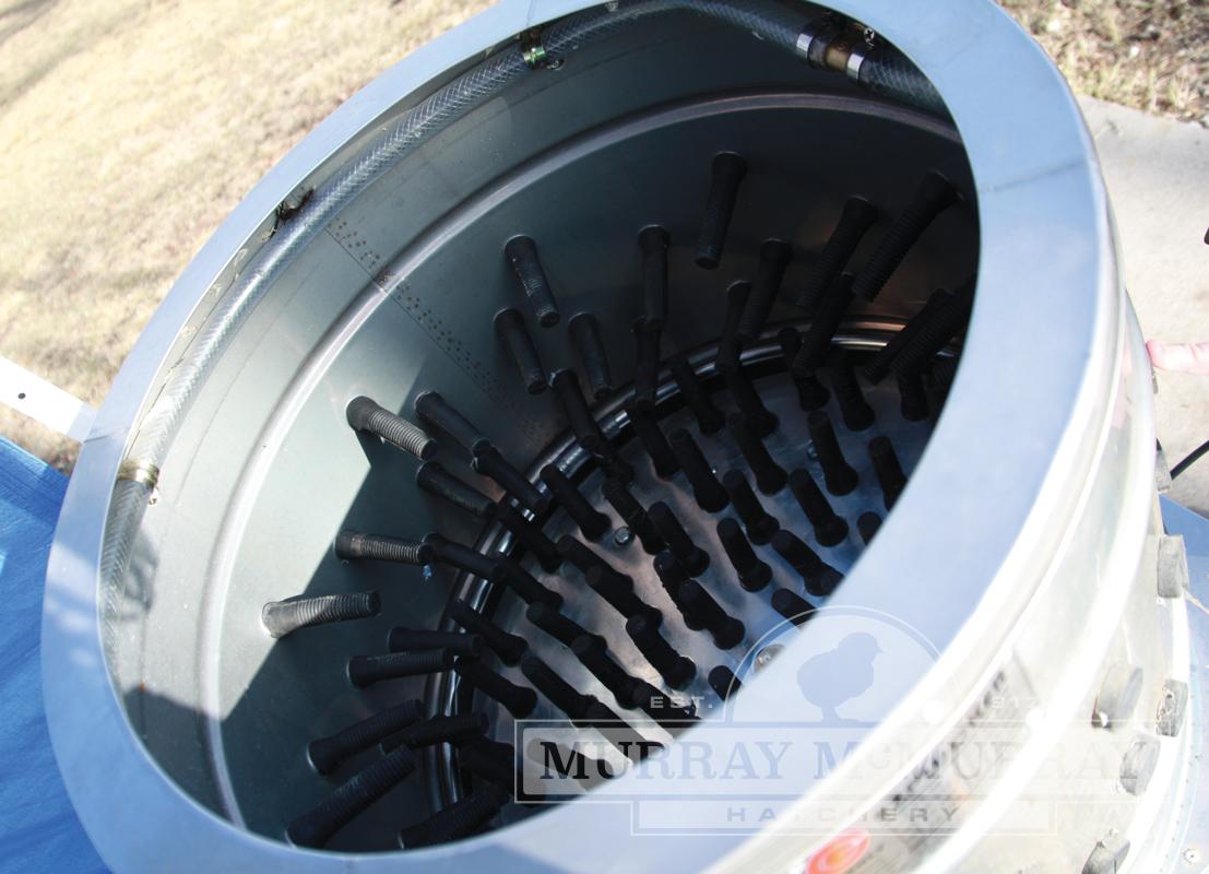 The EZ Plucker 169 offers more output than our 151 model, for those wanting to dress 1 to 6 chickens at a time, and turkeys up to 25 lbs. Just place dispatched, scalded poultry in the large tub, and spray with water as the unit spins and the rubber fingers remove feathers.