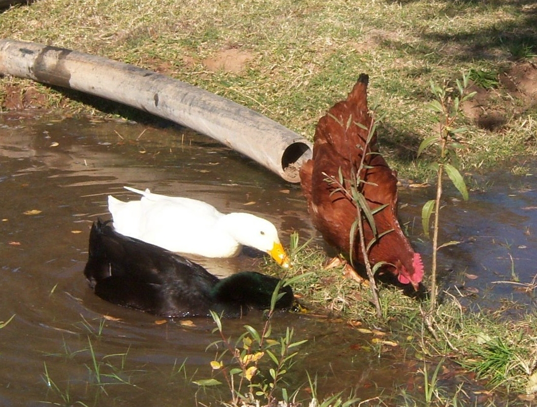 This is Chick, a Rhode Island Red hen who was raised with the 2 ducks in the picture and they were given to us at the age of 6 months.
