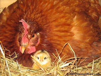 Our hen Lucille with her new born chick.