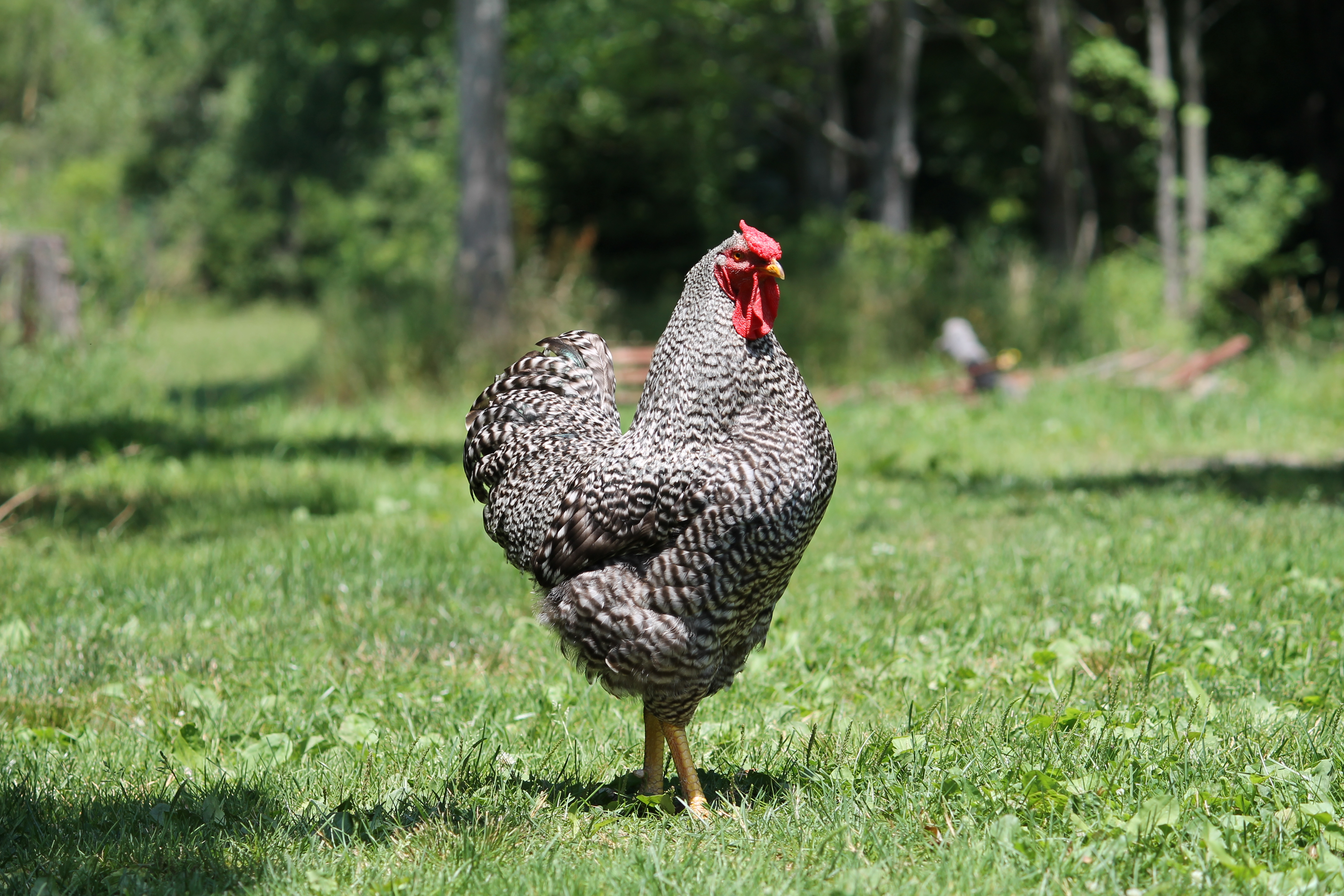 this is my dominique rooster, dominik. how original~ he is the best rooster anyone could ever hope for, not aggresive, hens come first in his book, and loves life. Always looking out for his girls, growls at the sign of something suspicious and they all look, and when he finds something to eat, he lets the hens have it and watches them eat it! im 16 and love chickens to death!!