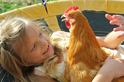 To all those who think chickens can't be pets: look at these two! The kids each have and LOVE a bird, and the birds love them back!