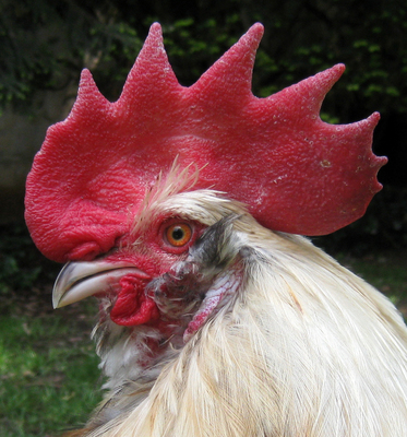 Blue Salmon Faverolles cock owned by Anne Martin, St Louis.