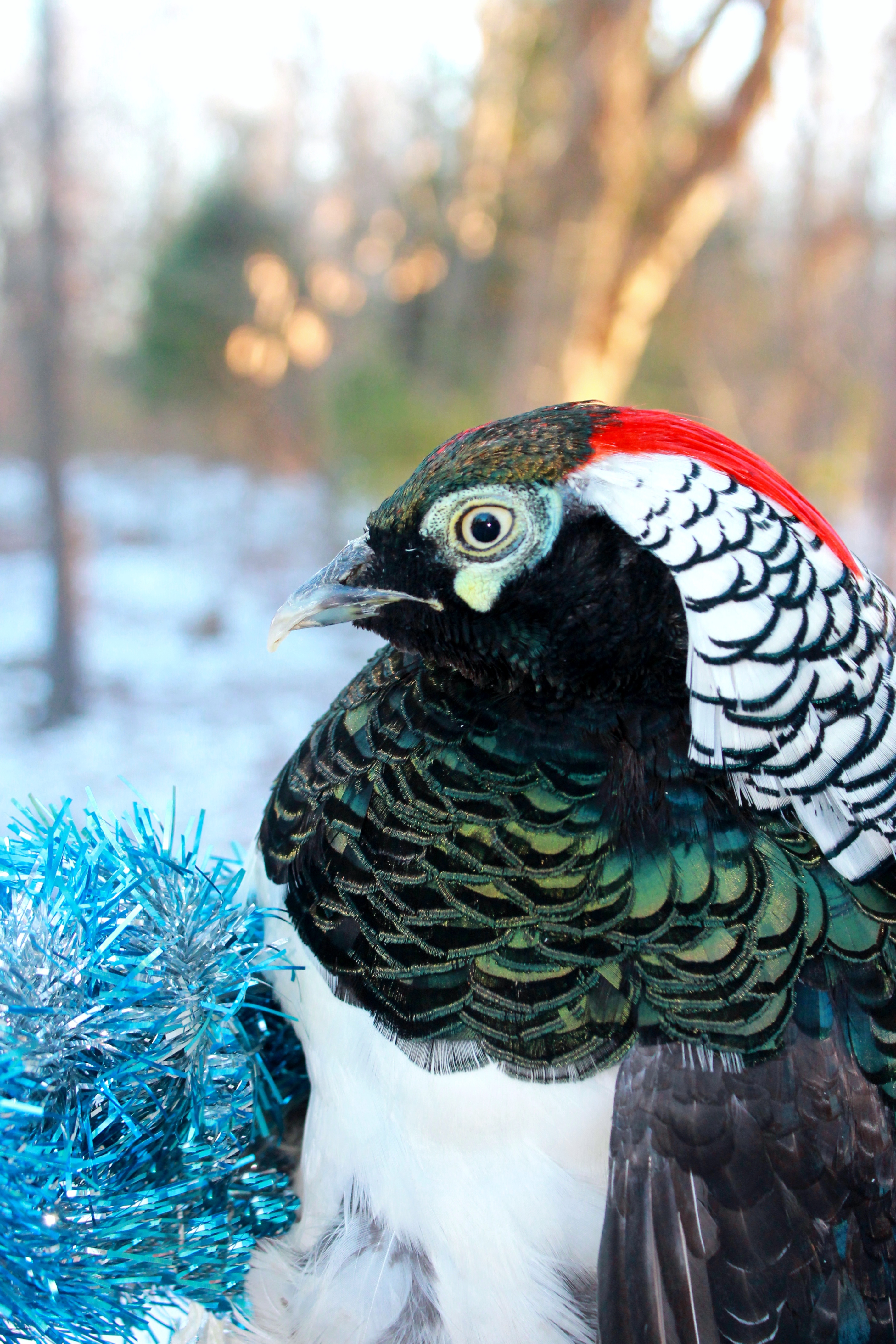 This is Gulliver, our Lady Amherst Pheasant out in the snow :)