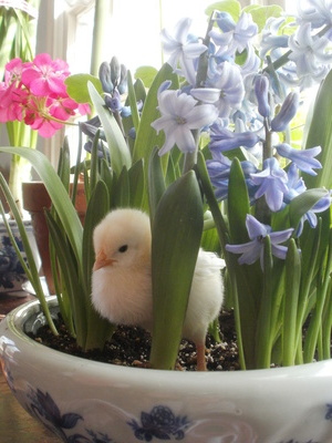 We had a hard winter, but this Pearl White Leghorn chick from Murray McMurray Hatchery is enjoying an early spring -- indoors! Our older Pearl Whites from McMurray were our best producers throughout this winter's cold and snow.