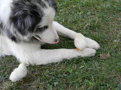 My dog likes to watch the chicks running through the yard. He was 6 months old when this picture was taken.