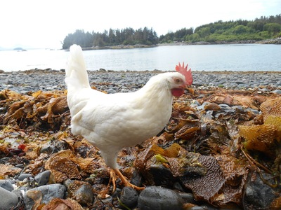 We live on a small island in SE Alaska and our "girls" just love scratching through the kelp for pill bugs. Lots of protein there!
