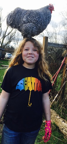 Bob, the friendliest Cochin roo with his adopted daughter, Sugar Seslar.