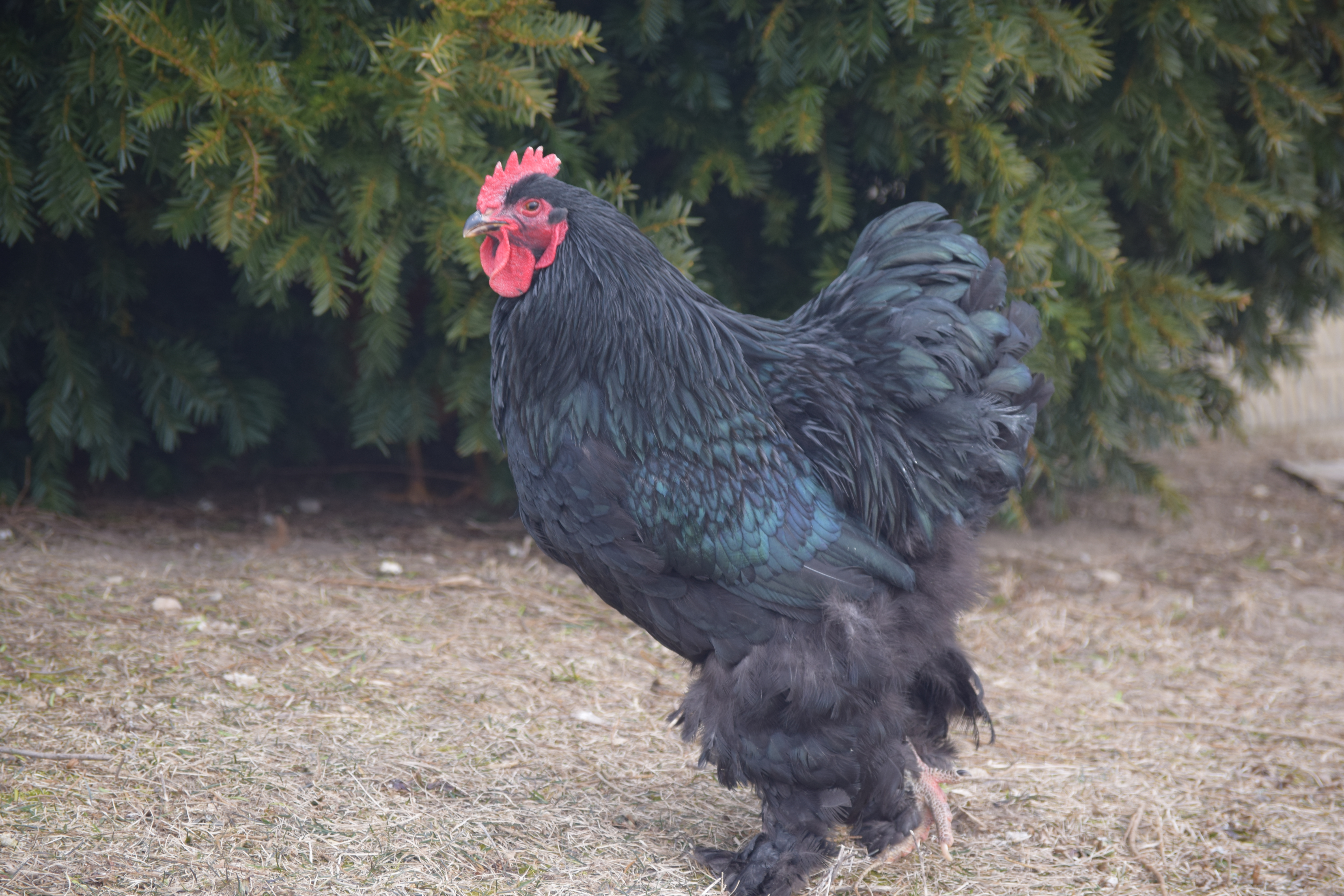 Our mystery chick "MAC" -a Black Cochin rooster. What a great disposition!