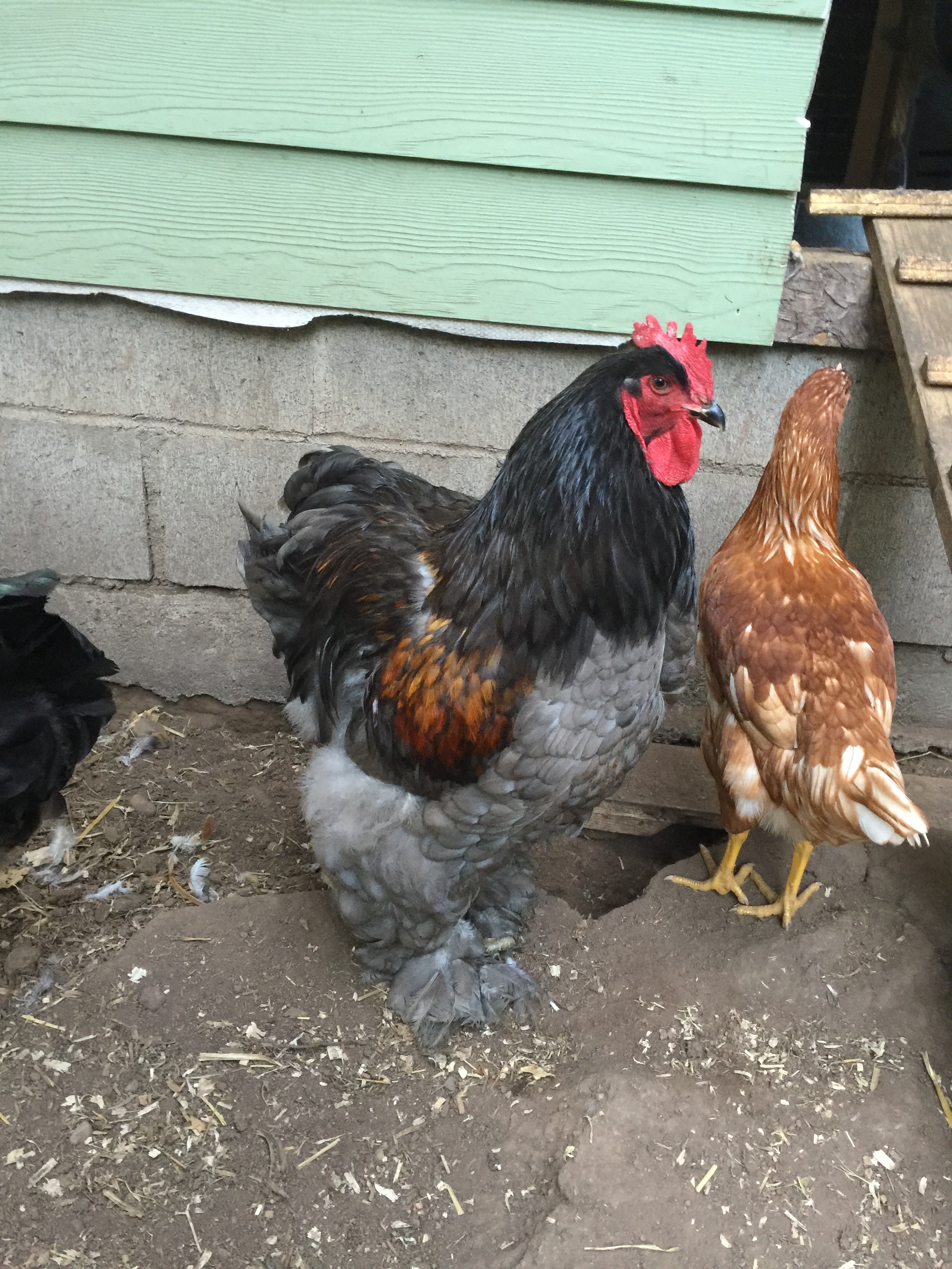 Our mystery chick “blue” the blue Cochin rooster. He is so polite and easy going, we love having him around