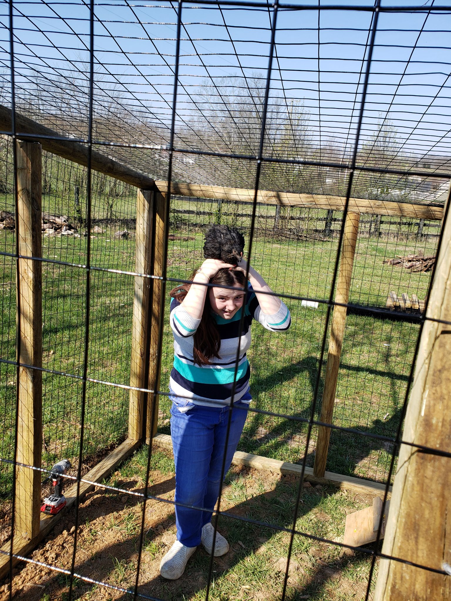 Our black Asian sitting on his favorite lil human.