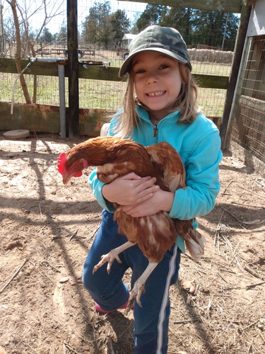 6 year old Gracie loves helping with our Cinnamon queen hens.