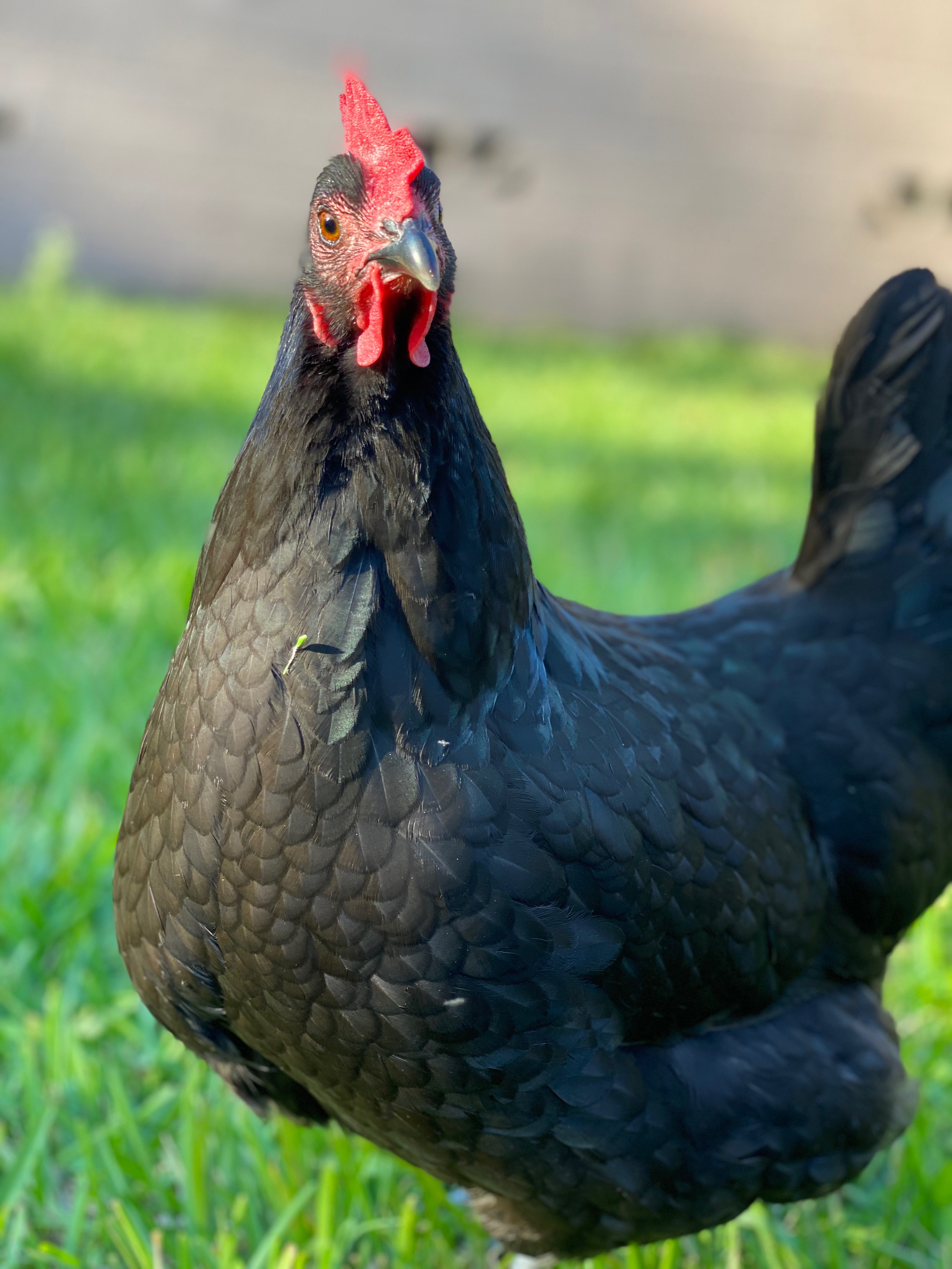 Curious Black Australourp hen