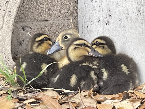 Rouen ducklings with a Swedish Blue duckling.