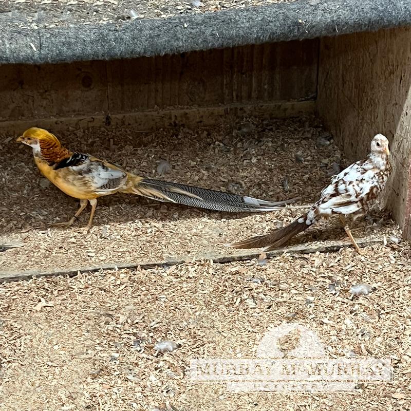 The Peach Splash Pheasant is a rare variety of the Peach Golden Pheasant — similar to the Yellow Golden Pheasant. the Peach Splash Pheasant is similar to the Peach Golden Pheasant but with white mottled feathers.
